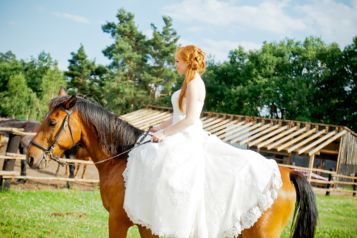 W naszej ofercie znajduje się sesja zdjęciowa w dniu ślubu. Trwa ona około 2-3 godzin i można podczas niej zrobić naprawdę super zdjęcia. Tak było z Moniką i Tomkiem. Udaliśmy się po ślubie cywilnym na sesję do stadniny koni. Zmuszeni byliśmy poczekać i sesja ślubna przeniosła się na pobliską łąkę.