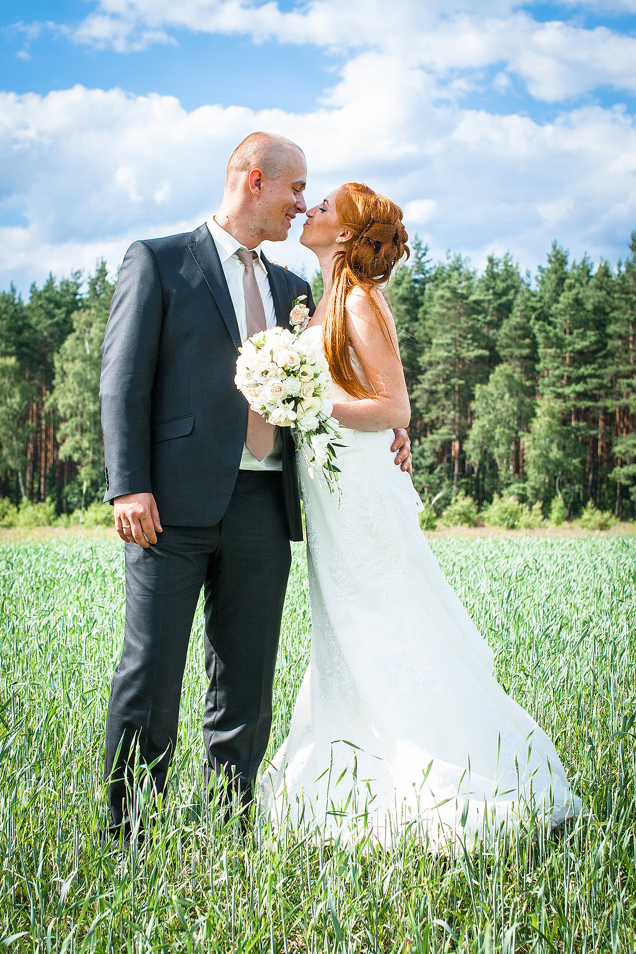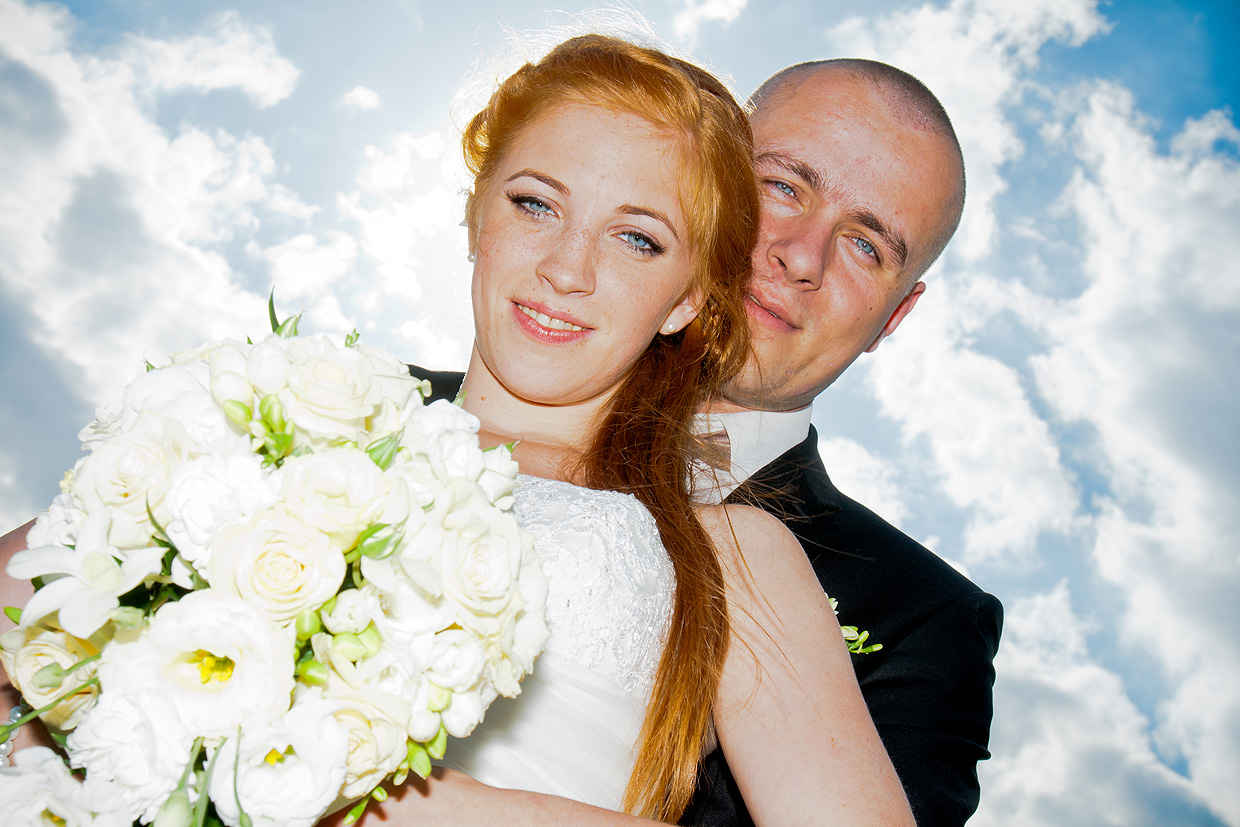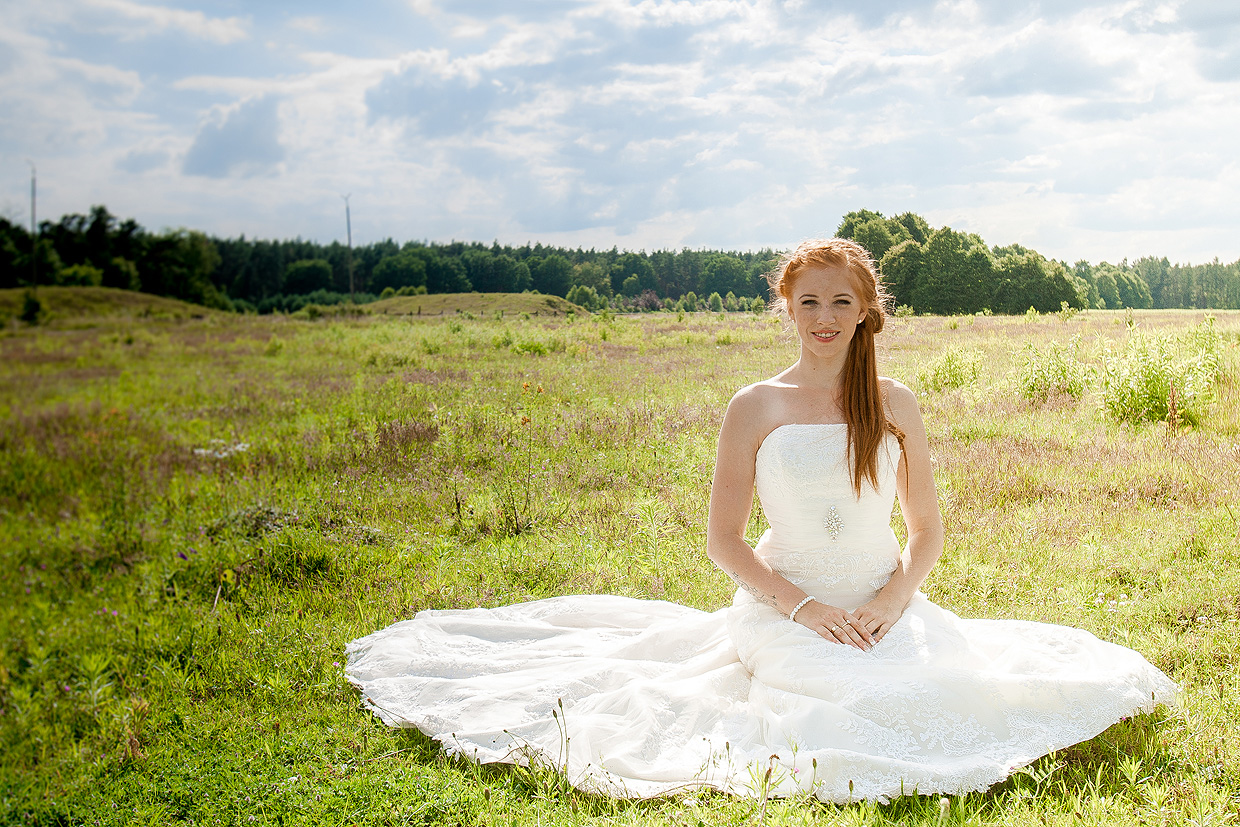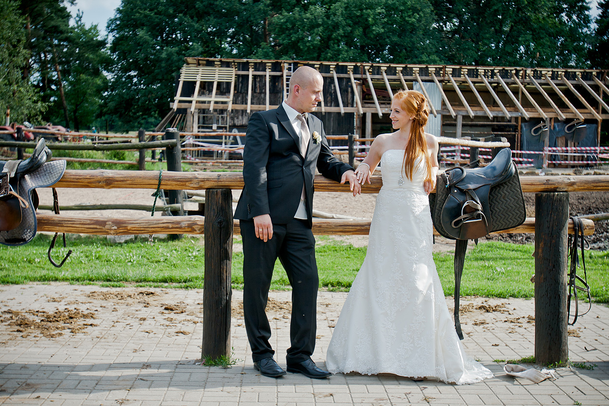 W naszej ofercie znajduje się sesja zdjęciowa w dniu ślubu. Trwa ona około 2-3 godzin i można podczas niej zrobić naprawdę super zdjęcia. Tak było z Moniką i Tomkiem. Udaliśmy się po ślubie cywilnym na sesję do stadniny koni. Zmuszeni byliśmy poczekać i sesja ślubna przeniosła się na pobliską łąkę.