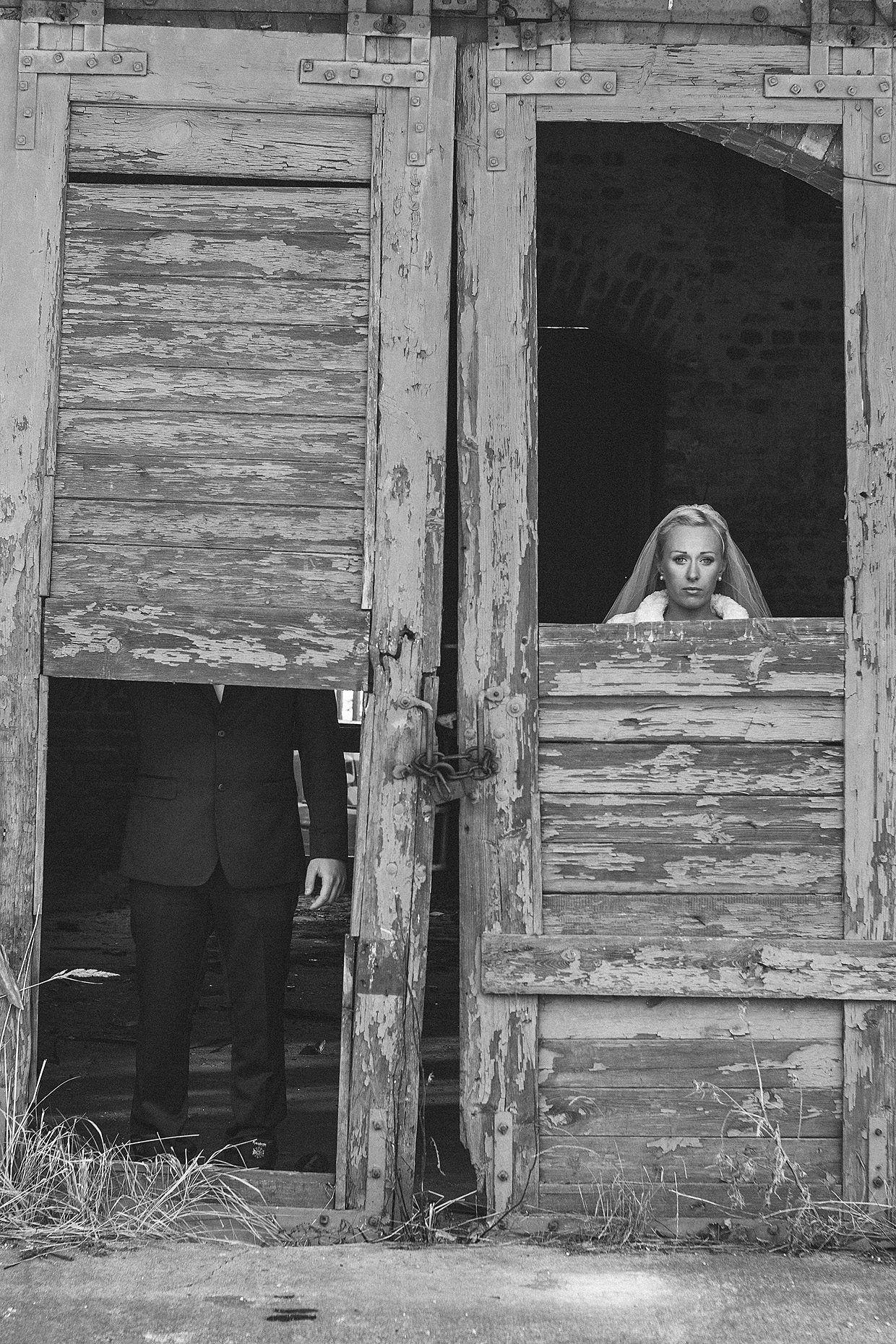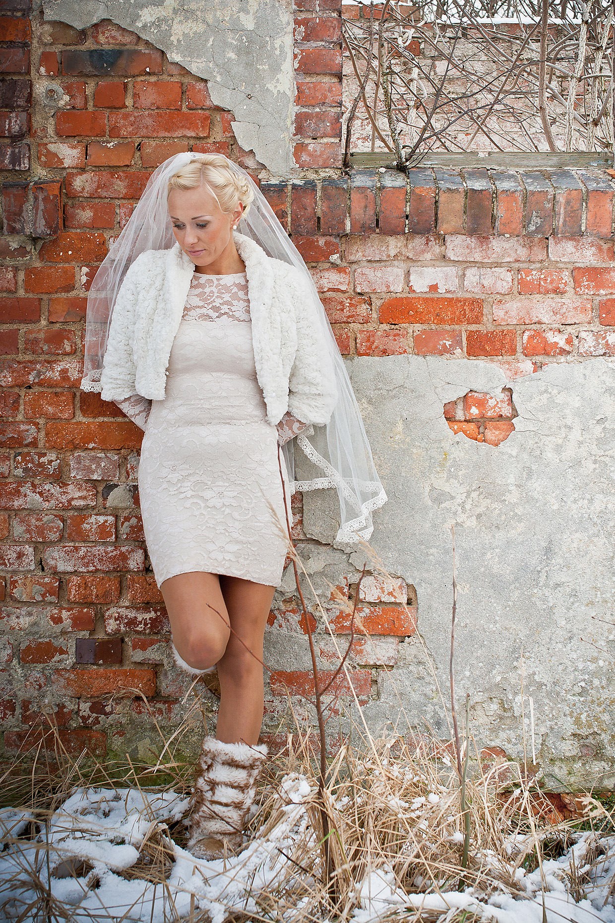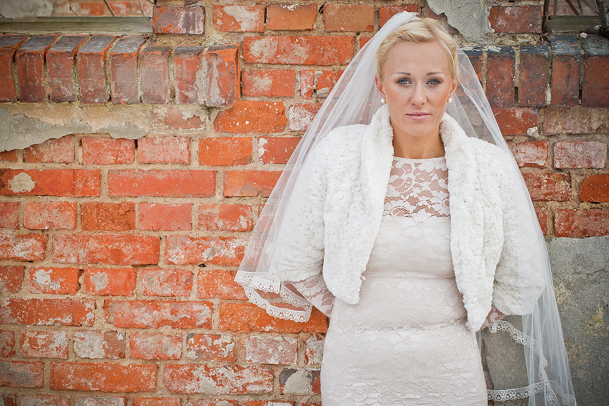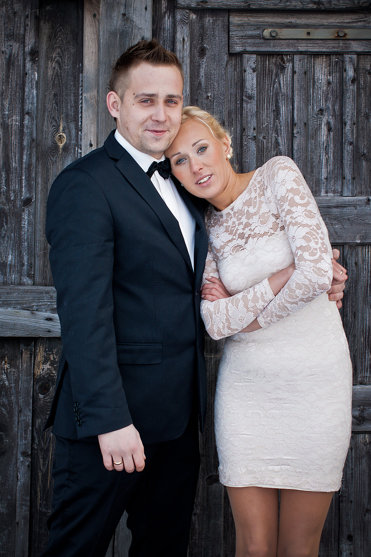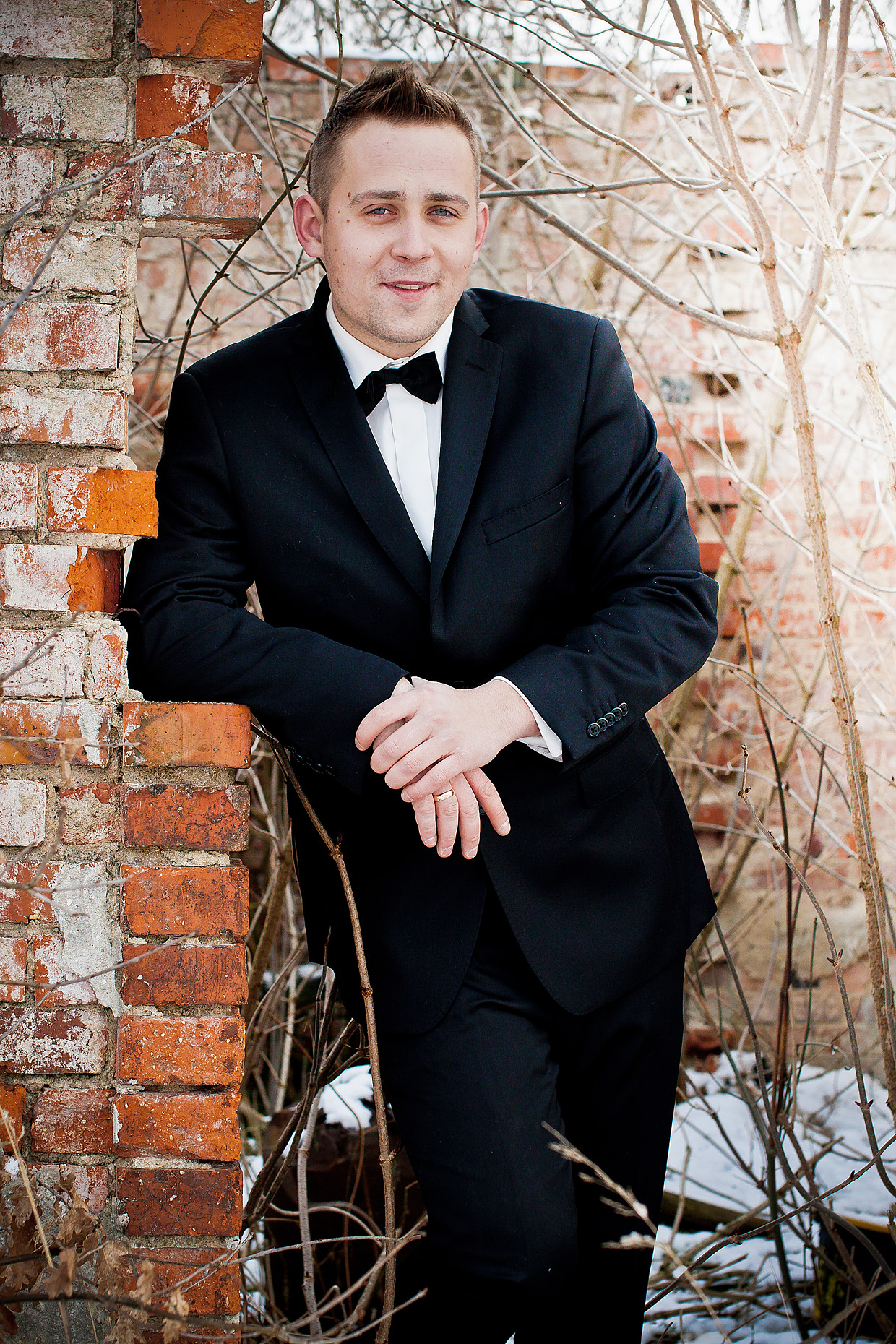 Klaudia chciała nietuzinkową sesję zdjęciową z mężem oraz w innym dniu sesję domowo – rodzinną, ale także ślubną. Taki mix do ogarnięcia nam się trafił. Zdjęcia robiliśmy w styczniu. Było kilkanaście stopni na minusie, ale Para Młoda dała radę. Na zdjęciach tego nie widać, ale Klaudia była bardzo zmarznięta. Michał pewnie miał z 5 podkoszulek pod garniturem. Nie chwalił się, ale coś było na rzeczy, bo znosił te mrozy jakoś lepiej. Zdjęcia robiliśmy w okolicy starej, nieczynnej stacji kolejowej w rodzinnym Nowogrodźcu. Potem udaliśmy się do “Klinkierni” i tam się zaczęło… Pierwszy raz przekonaliśmy się jak to miejsce żyło przez lata i jak cegła klinkierowa bajecznie wychodzi na zdjęciach. Potrzebowaliśmy też dodatkowego światła, żeby zrobić dobre zdjęcia w ciemnych pomieszczeniach, gdzie było dużo kurzu i mączki klinkierowej. Udało się i ze zdjęć jesteśmy bardzo zadowoleni. Kinga i Michał także.