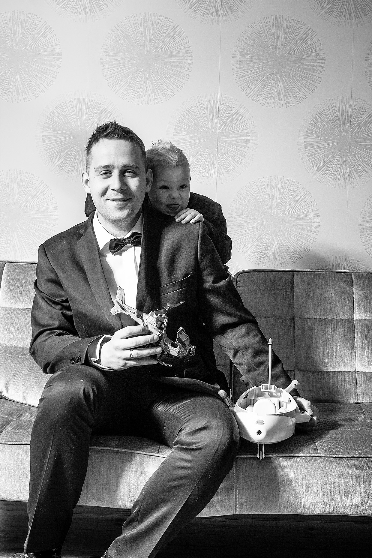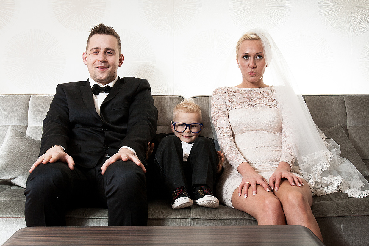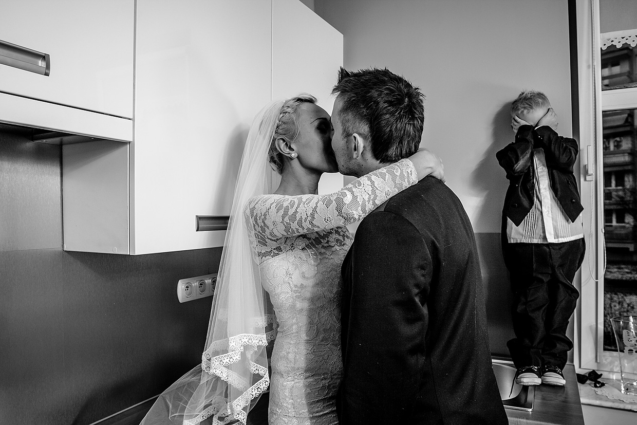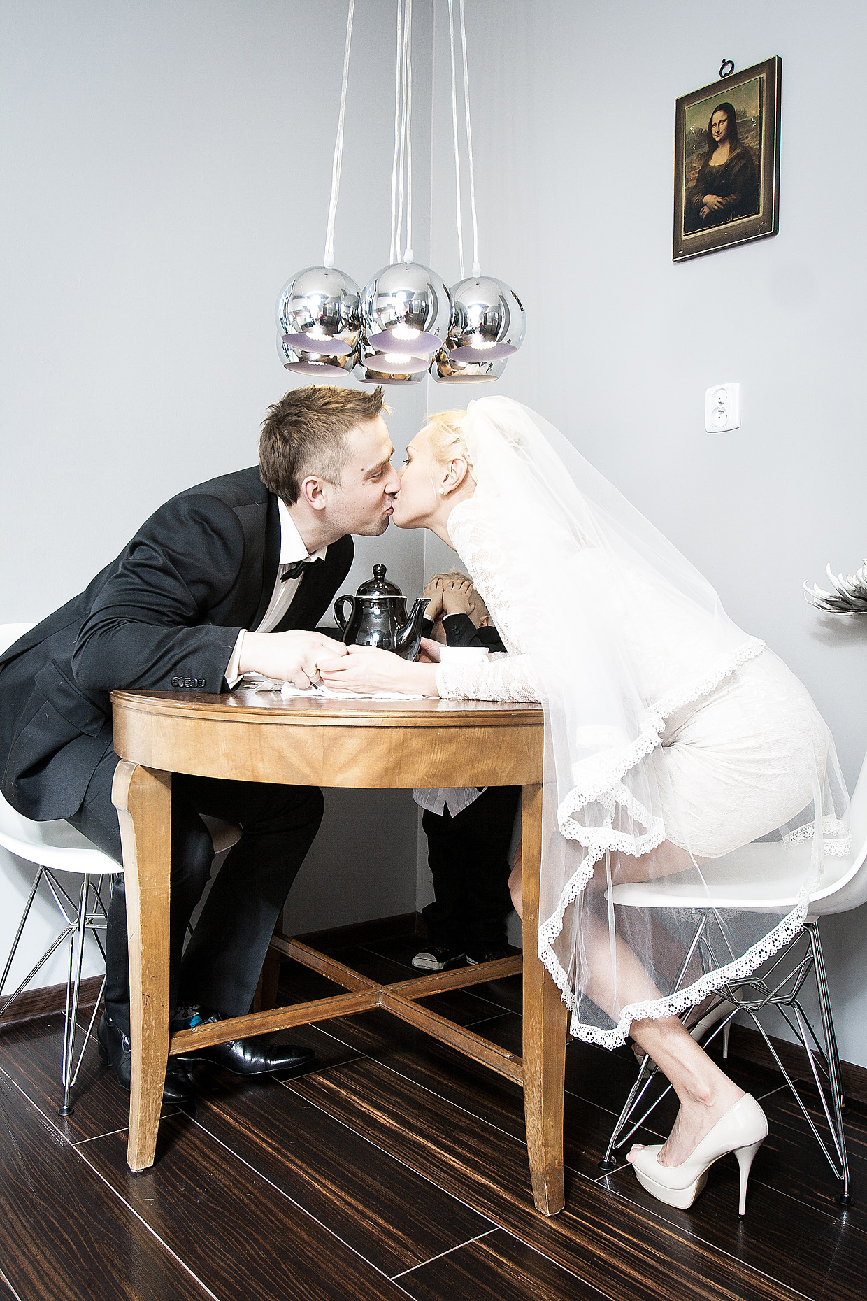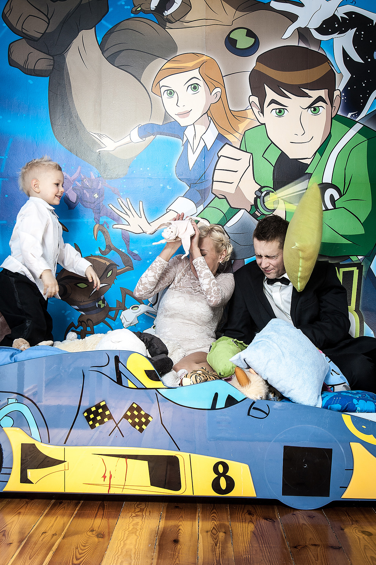 Drugi dzień zdjęć ślubnych rozpoczęliśmy w domu. Przytulne mieszkanko urządzone w stylu skandynawskim było w naszym guście i wykorzystaliśmy je w pełni do zdjęć, w których już uczestniczył synek Klaudii i Michała. Było poważnie, śmiesznie, romantycznie i wesoło. Mały rozbójnik nie pozwalał nam na chwilę odpoczynku i wytchnienia.