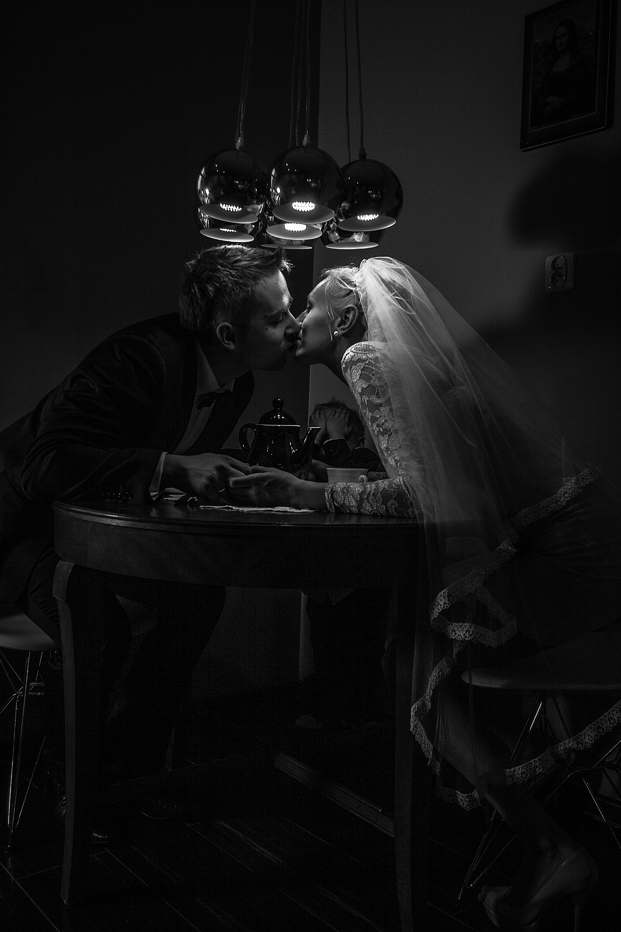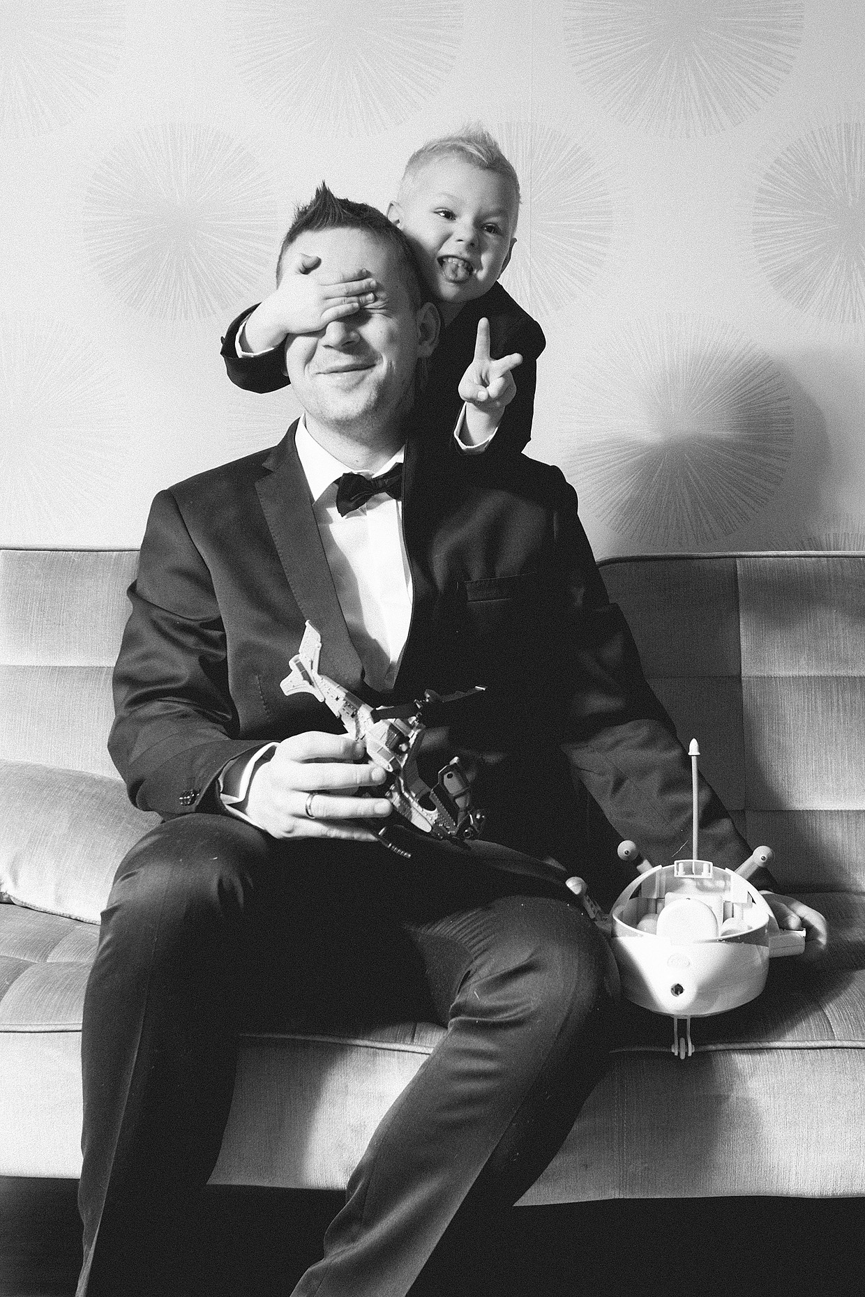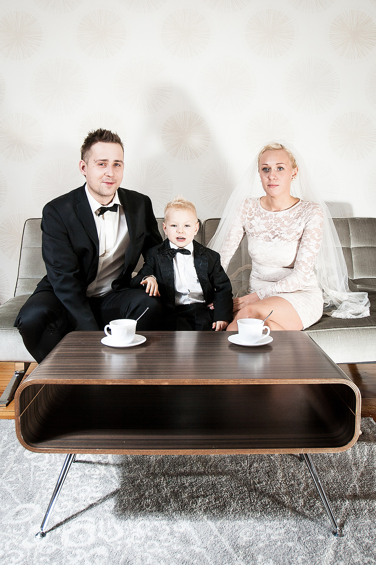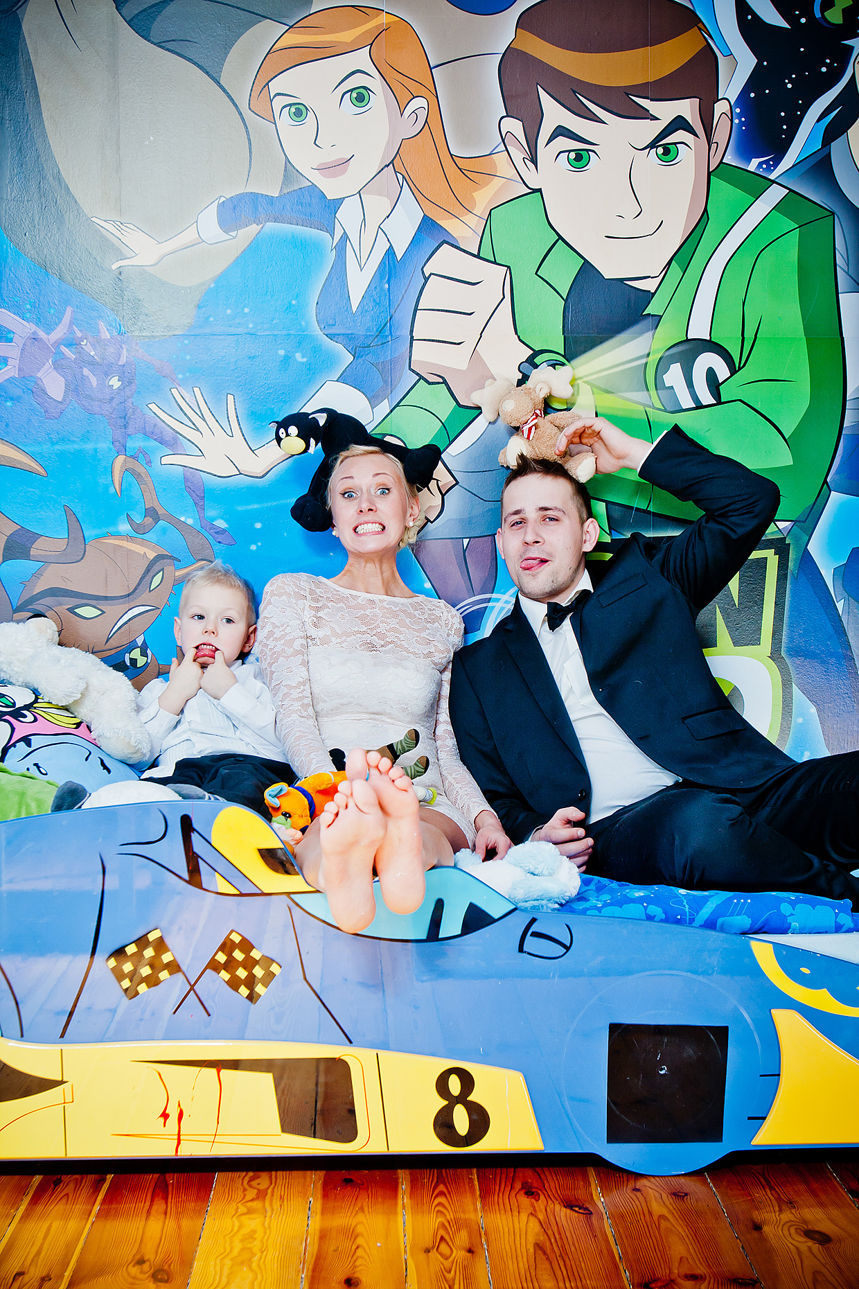 Drugi dzień zdjęć ślubnych rozpoczęliśmy w domu. Przytulne mieszkanko urządzone w stylu skandynawskim było w naszym guście i wykorzystaliśmy je w pełni do zdjęć, w których już uczestniczył synek Klaudii i Michała. Było poważnie, śmiesznie, romantycznie i wesoło. Mały rozbójnik nie pozwalał nam na chwilę odpoczynku i wytchnienia.